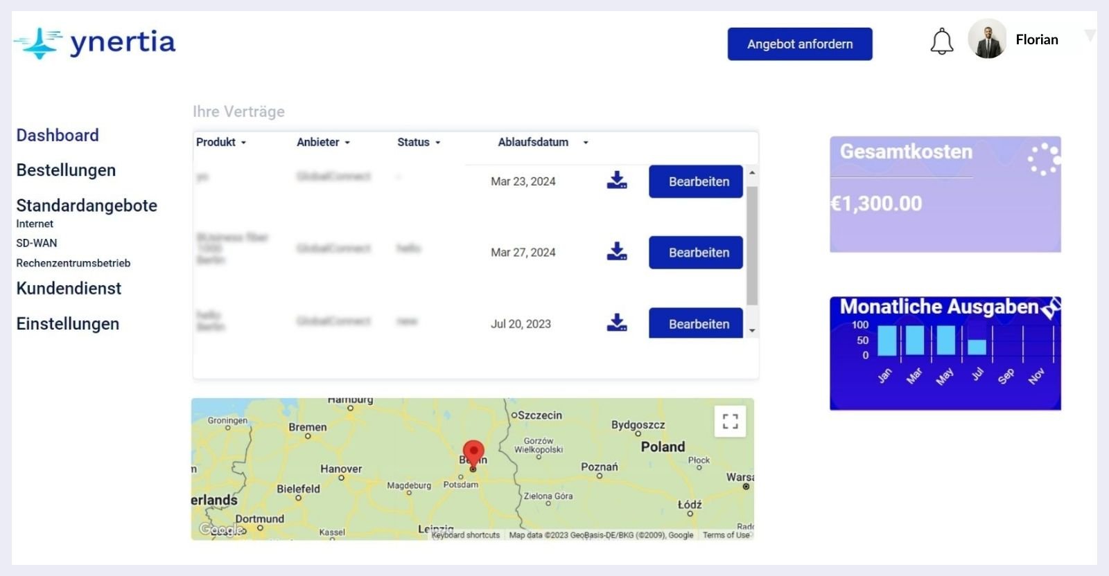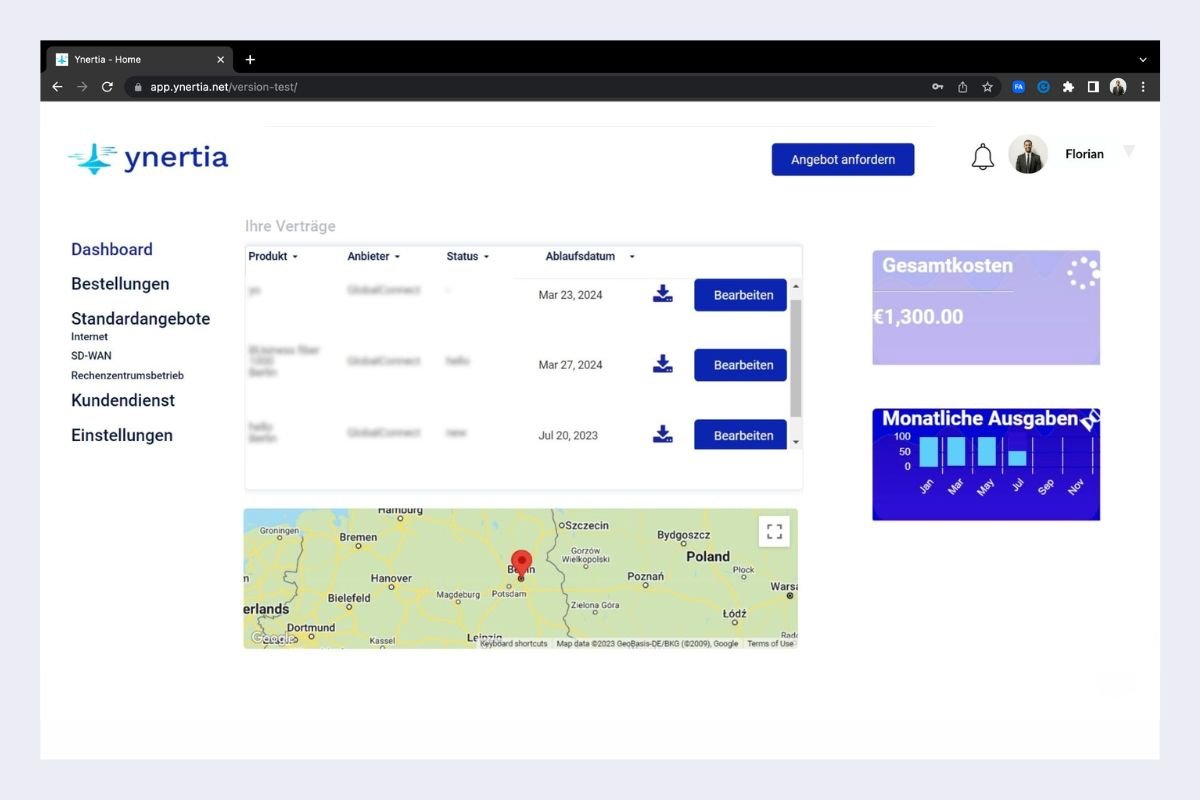 Die Plattform von Ynertia geht über die Beschaffung hinaus und bietet erweiterte Funktionen wie automatisiertes Vertragsmanagement und Kostenoptimierung. Durch die Nutzung des proprietären Ynertia-Dashboards können Unternehmen Verträge einfach verwalten und potenzielle Bereiche für das Kostenmanagement identifizieren.